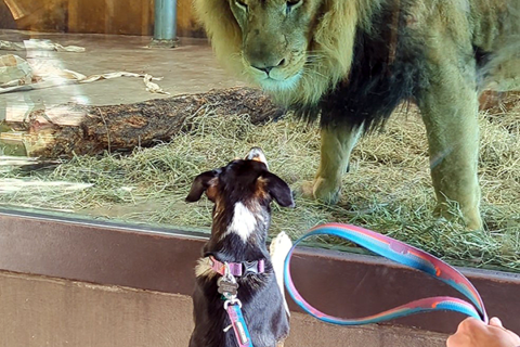 Of course, some species, like wallabies, and some individuals, like a few of our giraffe, aren’t fans of Dog Days, so we set them up for success. No dogs are allowed in the wallaby yard, giraffe barn, and a few other areas (check the Dog Days map!). Animal Care Teams closely monitor Zoo animal behaviors and give them choices to opt out of the festivities.