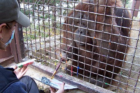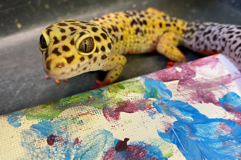 Having fun at your very own animal painting experience! Animal artists at the Zoo are taught how to paint using operant conditioning and positive reinforcement. Our animals enjoy painting as a fun form of enrichment, and you will too! Book a painting session with one of our animals, some animals even have add-on painting experience options with their Encounters and Meet and Greets. Go home with one-of-a-kind memory and a custom piece of animal art.