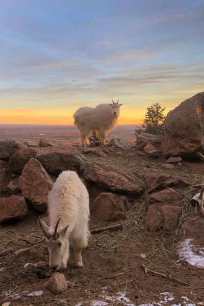 Have you seen our Rocky Mountain goats climbing in person yet? Next time you’re at Zoo, visit these rock athletes nestled between the Cozy Goat Expresso Bar and the Sky Ride on the Rocky Cliffs. You may get to witness their agility as they maneuver around the mountainside climbing boulders, plus notice how they get to enjoy some of the best views of the city below!
